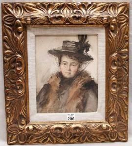 Portrait Of A Lady In Black Lace-trimmed Gown