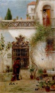 Gardsinterior Med Kvinna Vid Brunn, Venedig