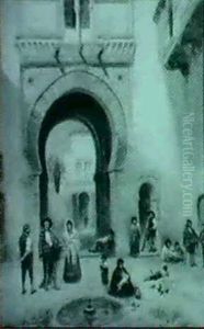 Gaardsinterior Med Manniskor Vid Brunn-motiv Fran Venedig