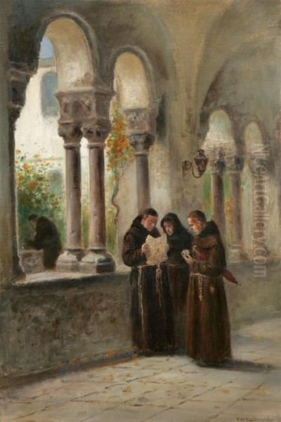 Klosterinterior Med Munkar