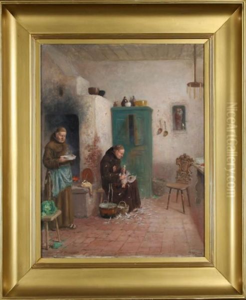 Bring the timeless beauty of Frans Wilhelm Odelmark's Koksinterior Med Munkar into your home with a handmade oil painting reproduction. Carefully recreated on canvas by skilled artists using traditional techniques, this piece captures the delicate brushwork, subtle light, and vibrant color of the original masterpiece. With museum-level quality and rich texture, it brings elegance and artistic depth to any space. Enjoy free shipping and make this masterpiece a part of your personal collection.