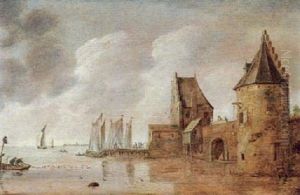 A River Estuary By A Fortified Town With Boats