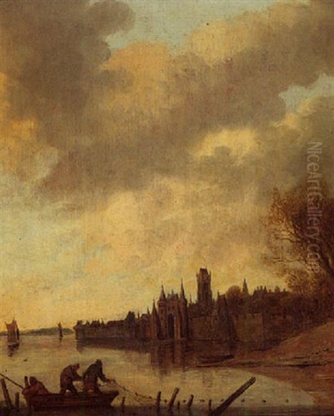 Rivierlandschap Met Stadspoort