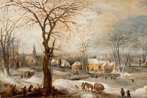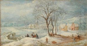 A Winter Landscape With Travellers And A Faggot Gatherer On A Track, A Village And Woodcutters Beyond