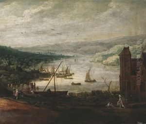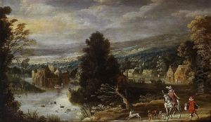 An Extensive River Landscape With Figures