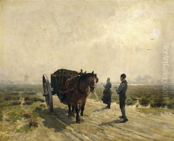 Begegnung Auf Dem Feldweg. Landsknecht Bei Seinem Einspanner, Mit Einer Magd Parlierend
