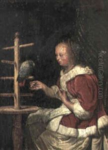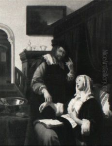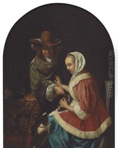 An Interior Scene With A Gentleman In Hunting Clothes Wooing A Lady