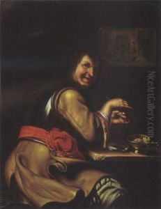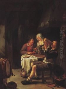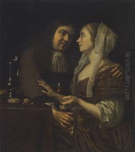 A Guard Holding An Upturned Roemer With A Serving Wench In A Tavern