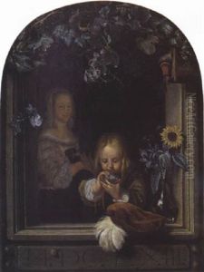 A Youth In Fancy Dress At A Feigned Stone Window, Holding A Roemer