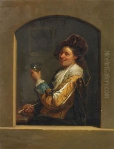 A Youth In Fancy Dress At A Feigned Stone Window, Holding A Roemer