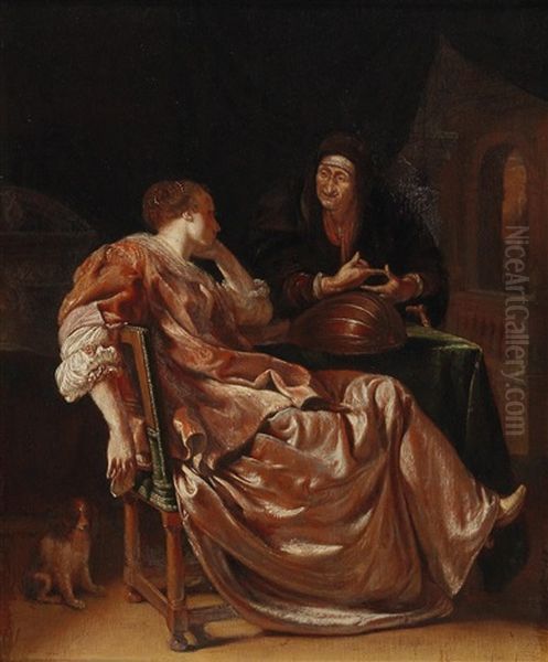 Bring the timeless beauty of Frans van Mieris's At The Soothsayer"s into your home with a handmade oil painting reproduction. Carefully recreated on canvas by skilled artists using traditional techniques, this piece captures the delicate brushwork, subtle light, and vibrant color of the original masterpiece. With museum-level quality and rich texture, it brings elegance and artistic depth to any space. Enjoy free shipping and make this masterpiece a part of your personal collection.