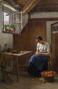 Interieur Mit Einer Jungen Frau Bei Der Naharbeit