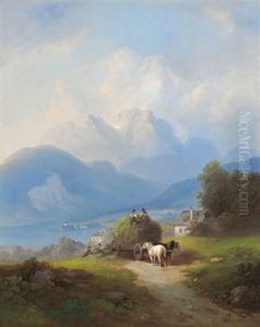 Gebirge-landschaft Mit Bauern Und Fuhrwerk