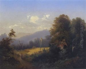 Landschaft Mit Figurlicher Staffage Und Einem Kleinen Dorf Im Hintergrund