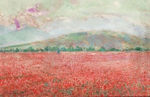 Paysage Au Coquelicots Oil Painting by Franz Bernard Gailliard