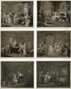 An Elegant Couple With An Old Maid In An Interior; And An Elegant Couple With An Old Maid In An Exterior