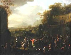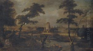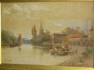 A River Scene With Peasants Returning In A Ferry From A