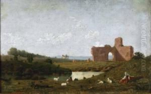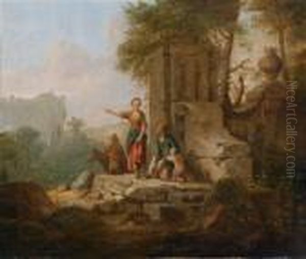Ein Paarsudliche Landschaften Mit Romischen Monumenten Und Landlicherstaffage