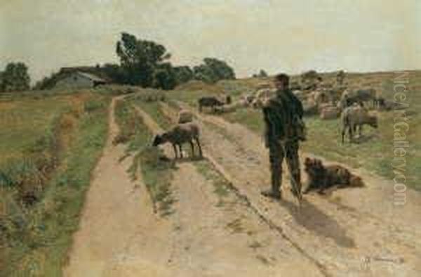 Landschaft Mit Schafherde. Signiert Und Datiert Unten Rechts: Fr. Hochmann 92. Verso Ein