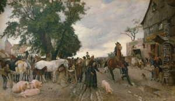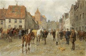Pferdemarkt Vor Den Toren Einer Kleinstadt.