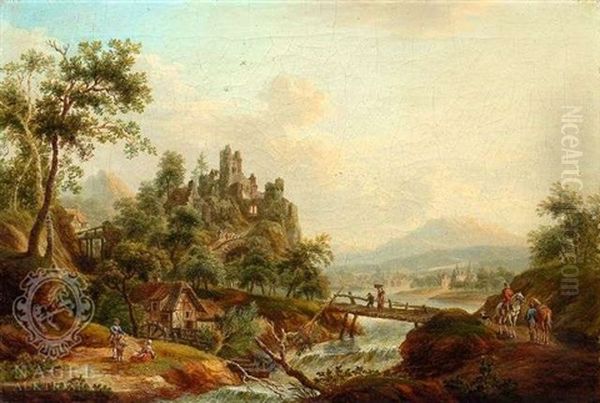 Flusslandschaft Mit Einer Muhle Zu Fusen Einer Grosen Burgruine