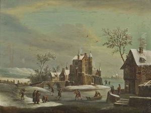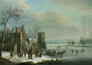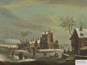 Winterlandschaft Mit Schlittschuhlaufern
