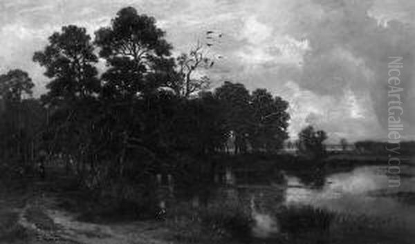 "abendliche Uferlandschaft". Sign. Ol Auf Lwd. 43 X 73,5 Cm. Rahmen