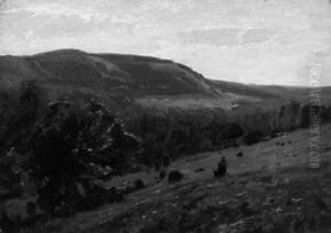 Fluslandschaft Mit Turm Und Hohen Baumen.