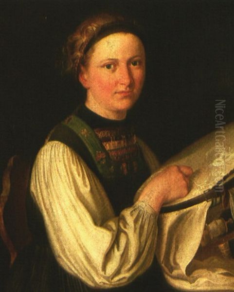 Portrait Eines Madchens Am Stickrahmen