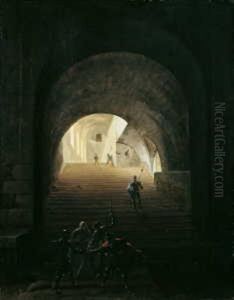 A Swiss Guard In The Portico Of The Basilica, Rome, By Moonlight