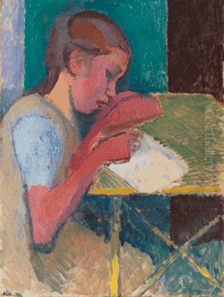 Schreibendes Madchen Oil Painting by Franz Noelken