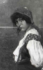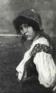 Portrait Eines Zigeunermadchens Vor Eine Pusztalandschaft