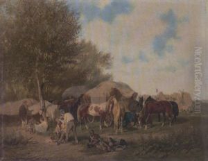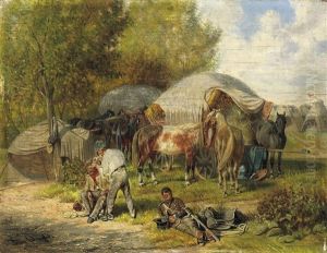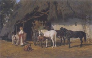 Marketenderin Beim Futtern Einer Stute Im Feldlager