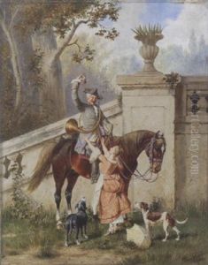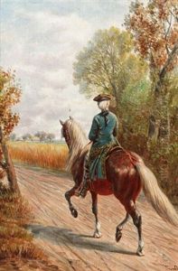 Jagdreiter Mit Horn Bei Der Begrussung Eines Madchens