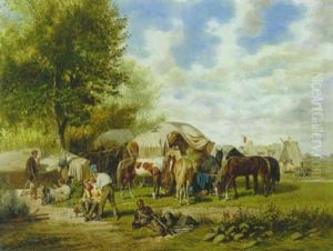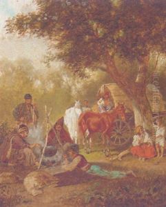 Zigeunerfuhrwerk, Bei Der Rast In Der Puszta