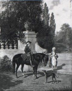 Parforcereiter Bei Der Begrusung Eines Madchens (+ Parforcereiter Mit Hund Und Wartendem Madchen Am Parktor; 2 Works)