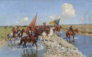 Tscherkessenreiter Im Kaukasus Oil Painting by Franz Quaglio
