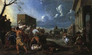 Bring the timeless beauty of Franz Reinhardt the Elder's Raub Der Sabinerinnen into your home with a handmade oil painting reproduction. Carefully recreated on canvas by skilled artists using traditional techniques, this piece captures the delicate brushwork, subtle light, and vibrant color of the original masterpiece. With museum-level quality and rich texture, it brings elegance and artistic depth to any space. Enjoy free shipping and make this masterpiece a part of your personal collection.