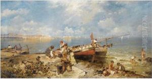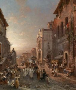 Musicians Dancing Before A House With A View Of The Bay Of Naples