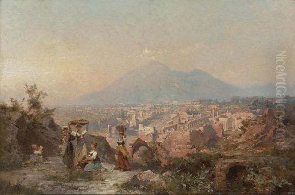 Figures On A Hill Overlooking Pompeii