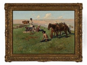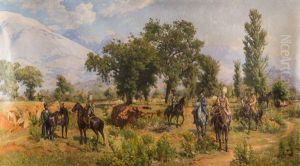 Kaukasischer Reitertrupp Bei Der Rast