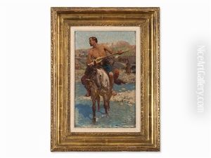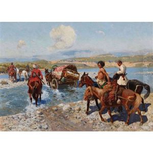 Circassian Horsemen Fording A River