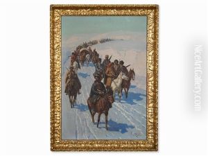 Reiterzug Heimkehrender Kosaken In Winterlandschaft