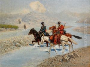 Tscherkessische Reiter Einen Fluss Uberquerend