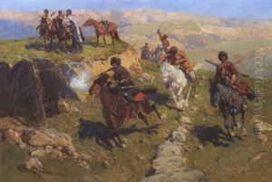Drei Tscherkessenreiter Auf Sonniger Hochebene
