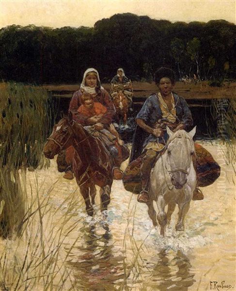 Bring the timeless beauty of Franz Roubaud's A Cossack Family into your home with a handmade oil painting reproduction. Carefully recreated on canvas by skilled artists using traditional techniques, this piece captures the delicate brushwork, subtle light, and vibrant color of the original masterpiece. With museum-level quality and rich texture, it brings elegance and artistic depth to any space. Enjoy free shipping and make this masterpiece a part of your personal collection.