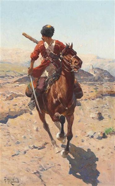 Bring the timeless beauty of Franz Roubaud's A Cossack Galloping On Horseback into your home with a handmade oil painting reproduction. Carefully recreated on canvas by skilled artists using traditional techniques, this piece captures the delicate brushwork, subtle light, and vibrant color of the original masterpiece. With museum-level quality and rich texture, it brings elegance and artistic depth to any space. Enjoy free shipping and make this masterpiece a part of your personal collection.