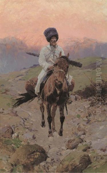 A Cossack On Horseback At Sunset