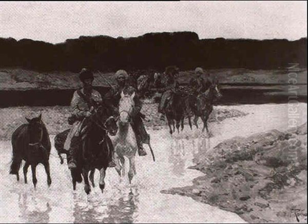 Berittene Tscherkessen Uberqueren Einen Flus