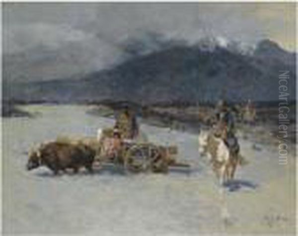 Crossing The River Oil Painting by Franz Roubaud